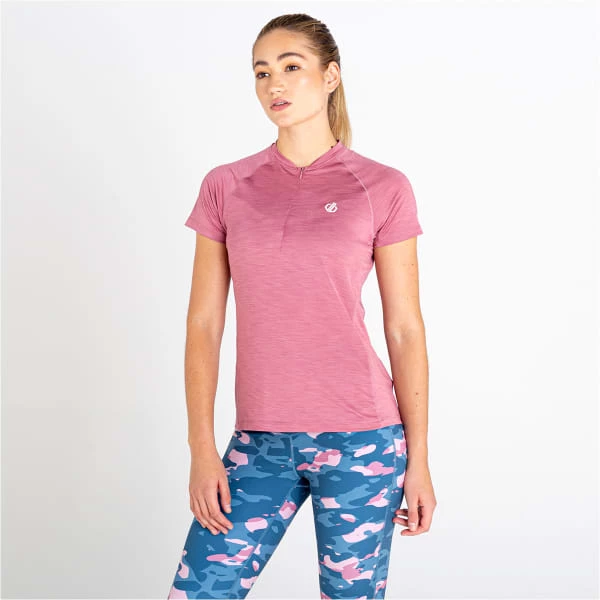 L‘OUTDARE JERSEY III de Dare 2B est un tee-shirt technique à manches courtes et col zippé pour femme adapté aux activités endurantes pratiquées par temps chaud.