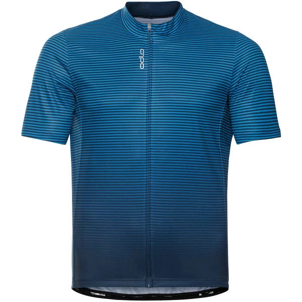 L’ESSENTIAL PRINT STAND-UP COLLAR S/S FZ de chez Odlo est un tee-shirt technique pour homme spécialement conçu pour la pratique du cyclisme.